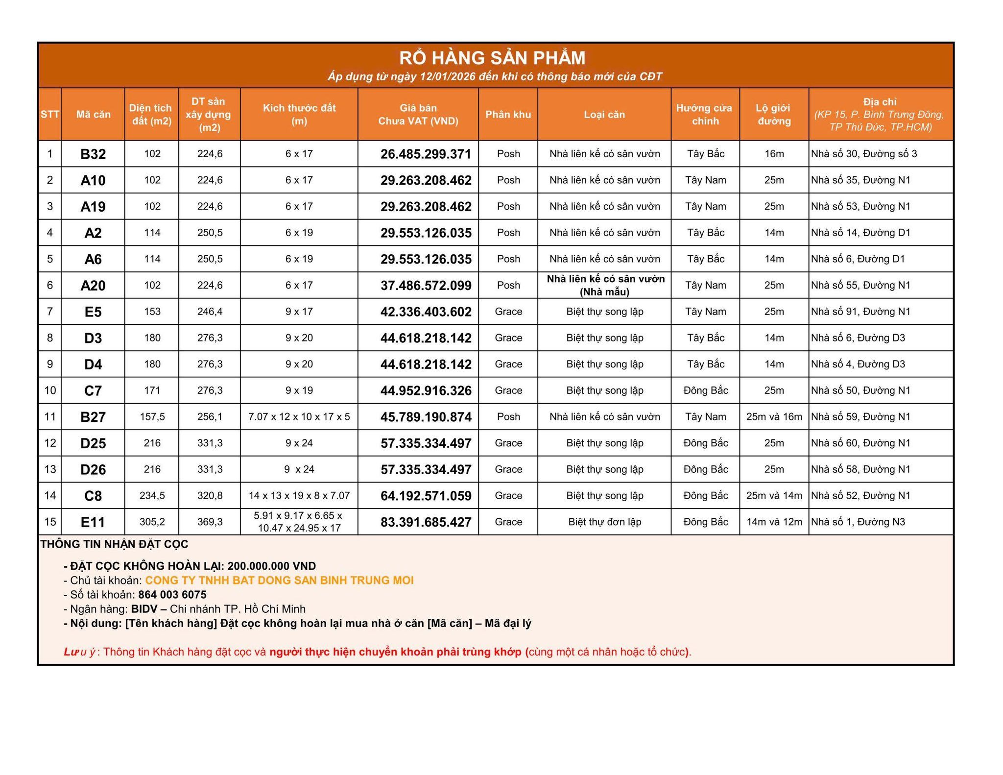 👉 Sản phẩm phù hợp từng mức vốn có giới hạn – ưu tiên nhà đầu tư liên hệ sớm.