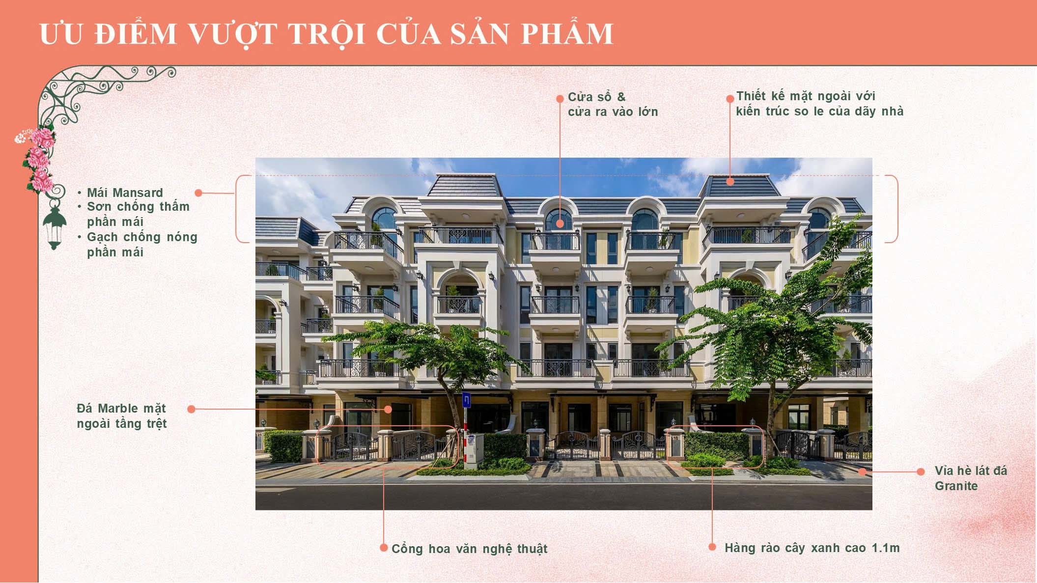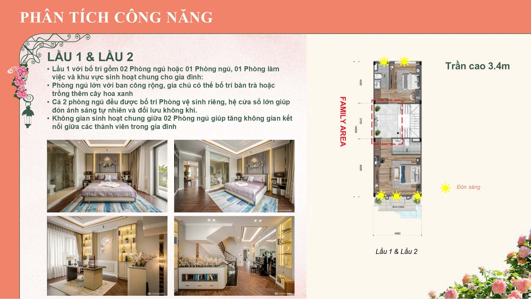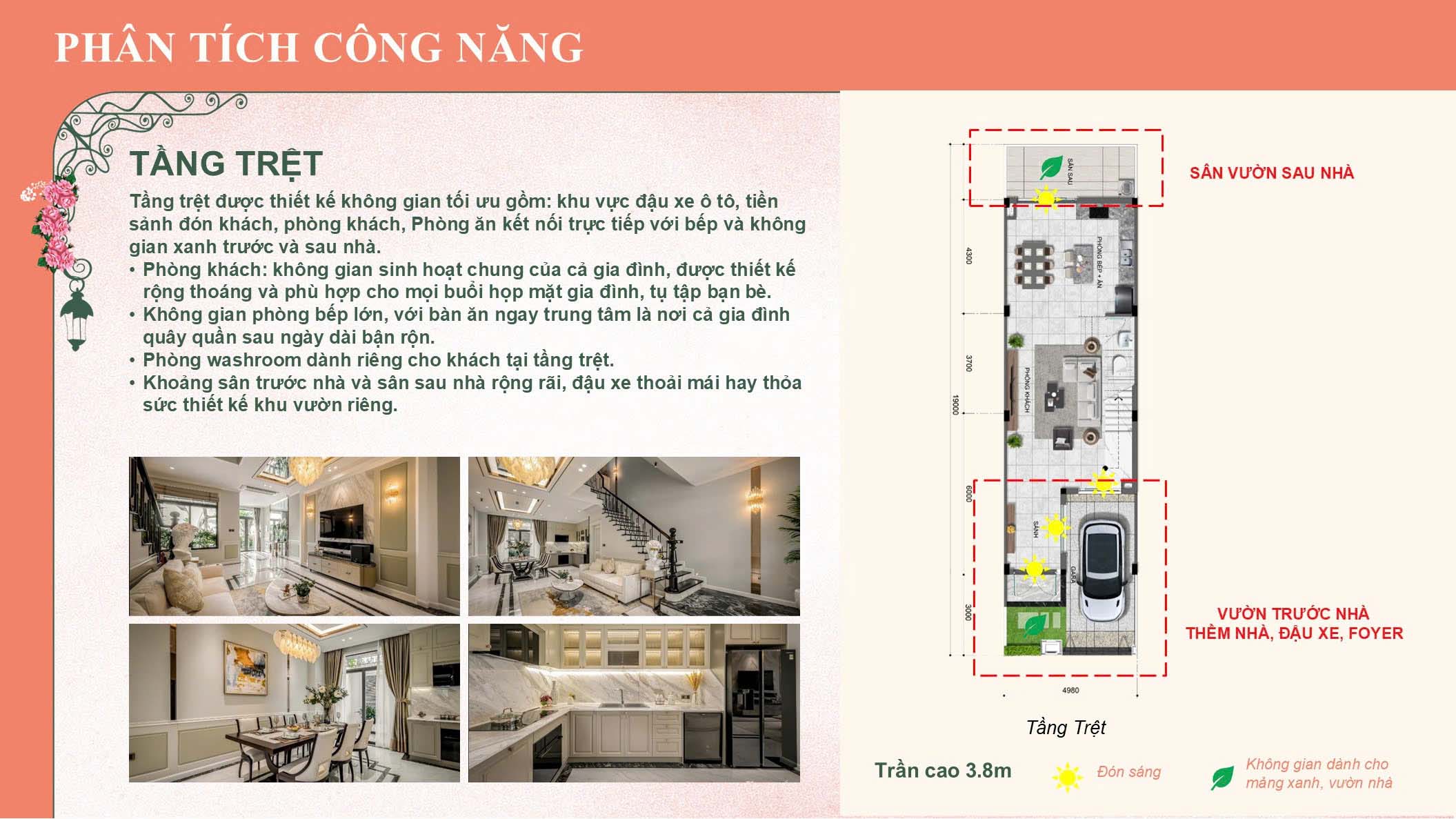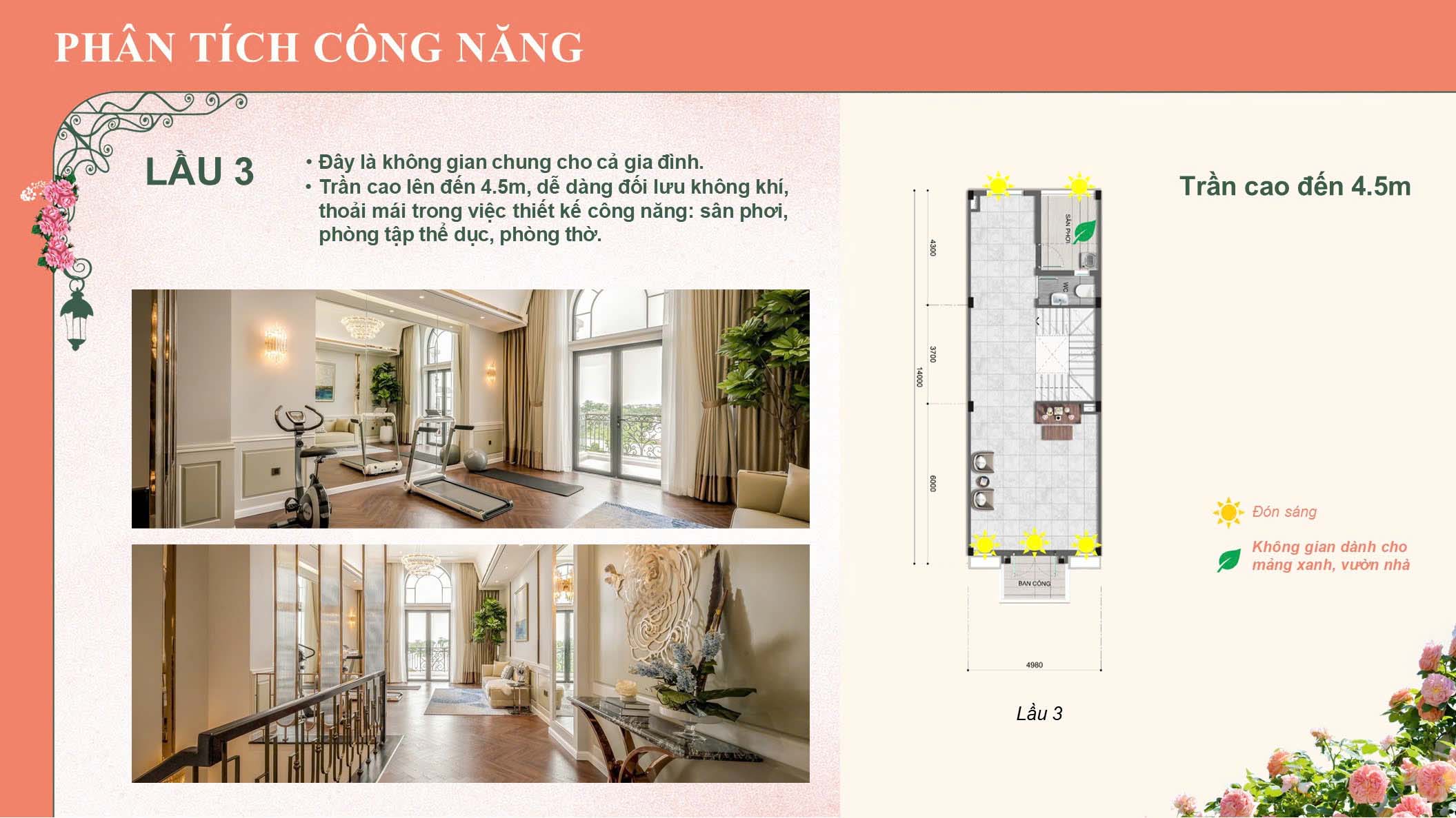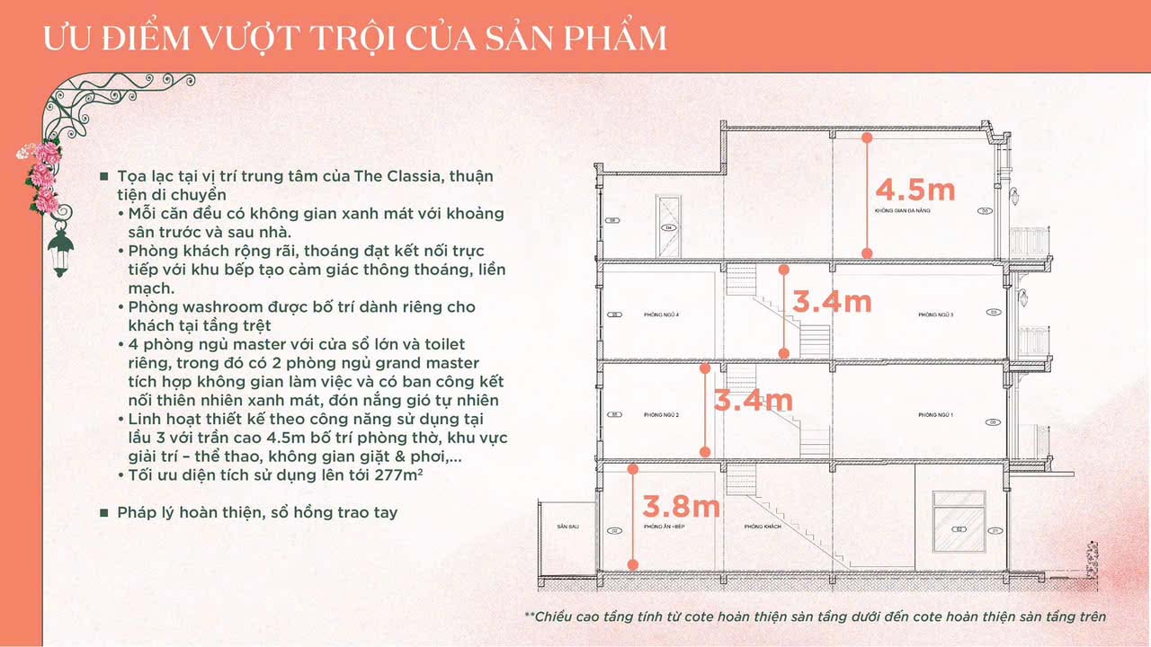 – Trần cao từ 3,4 m – 4,5 m, tối ưu ánh sáng tự nhiên.