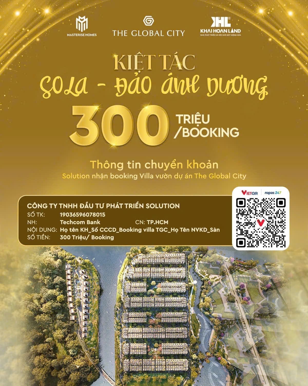 Masterise Homes chính thức ra mắt phân khu mới tại trung tâm mới The Global City – SOLA – Đảo Ánh Dương. Đây là phân khu bán đảo villa vườn duy nhất tại trung tâm mới, là lựa chọn lý tưởng của giới tinh anh và các nhà đầu tư hàng đầu, với những giá trị độc bản: