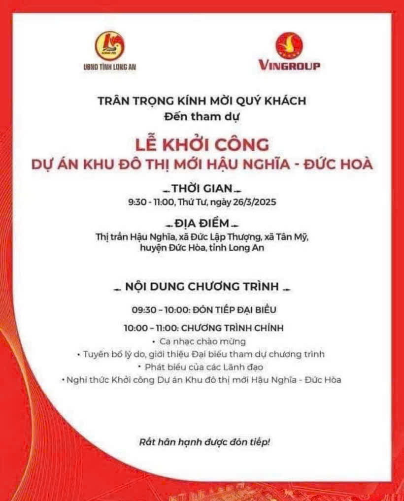 Dự án có quy mô gần 200 ha, tổng mức đầu tư hơn 28.000 tỷ đồng, được tỉnh Long An chấp thuận vào tháng 10/2023. Đây không chỉ là dự án bất động sản tỷ USD đầu tiên tại Long An mà còn là dự án đầu tiên của Vingroup tại địa phương này.