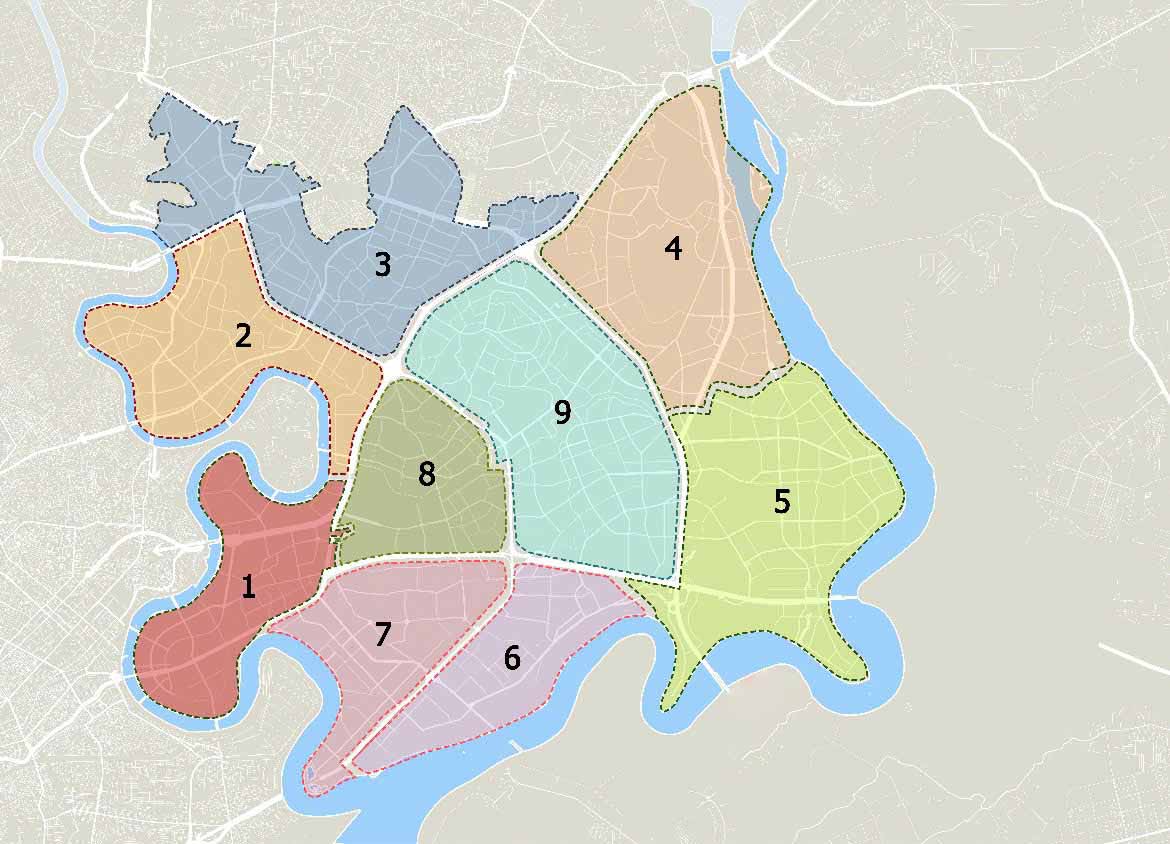 Phân vùng số 1: Thuộc các phường Thủ Thiêm, An Lợi Đông, Thảo Điền và một phần các phường An Khánh, An Phú; được giới hạn bởi các tuyến: đường Mai Chí Thọ và sông Sài Gòn, Rạch Chiếc.
