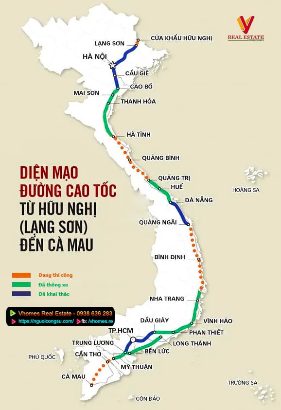 Tính đến sau ngày 30/4/2025, các tuyến cao tốc Bắc-Nam vẫn còn đang trong quá trình thi công gồm: Hữu Nghị – Chi Lăng (60km); Vũng Áng – Bùng (55km); Vạn Ninh – Cam Lộ (49km); Hòa Liên – Túy Loan (11,5km); Quảng Ngãi – Hoài Nhơn (88km); Hoài Nhơn – Quy Nhơn (70,1km); Quy Nhơn – Chí Thạnh (61,7km); Chí Thạnh – Vân Phong (48km); Cần Thơ – Hậu Giang (37,65km); Hậu Giang – Cà Mau (73,22km) và 13km còn lại của tuyến Vân Phong – Nha Trang.